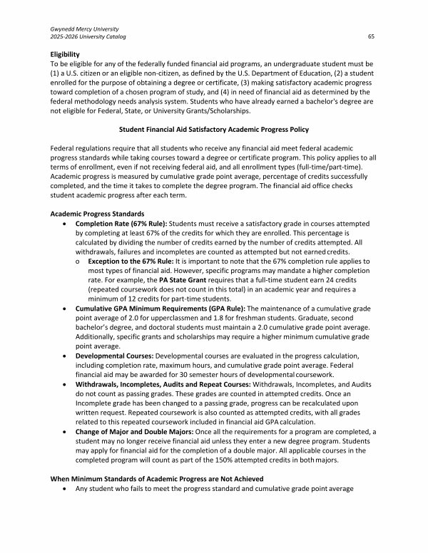Gwynedd Mercy University 2025-2026 University Catalog 65