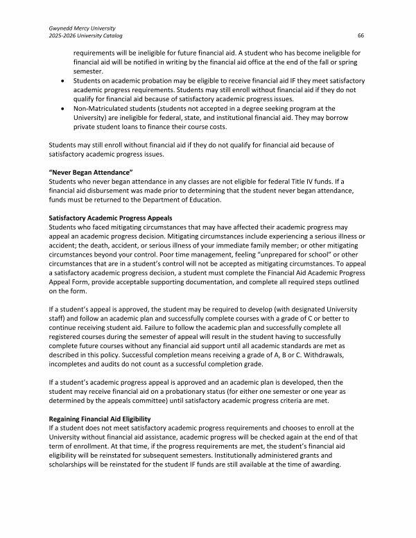 Gwynedd Mercy University 2025-2026 University Catalog 66