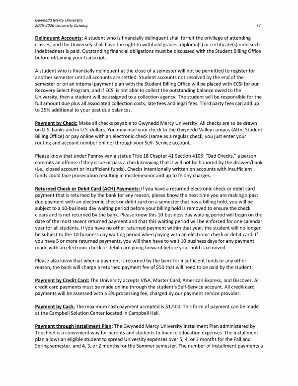 Gwynedd Mercy University 2025-2026 University Catalog 77