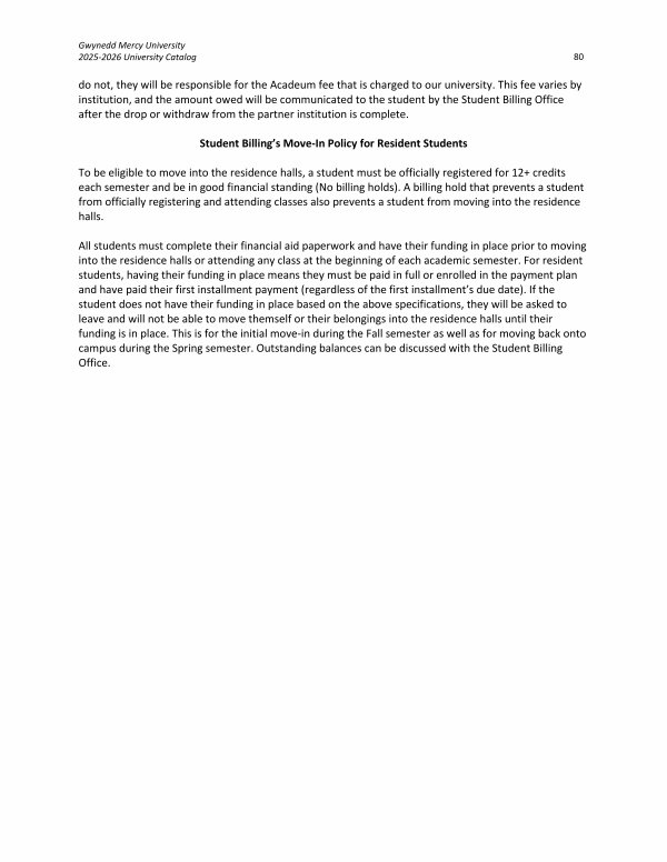 Gwynedd Mercy University 2025-2026 University Catalog 80