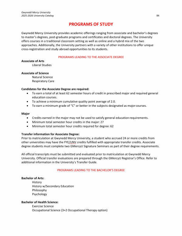 Gwynedd Mercy University 2025-2026 University Catalog 84
