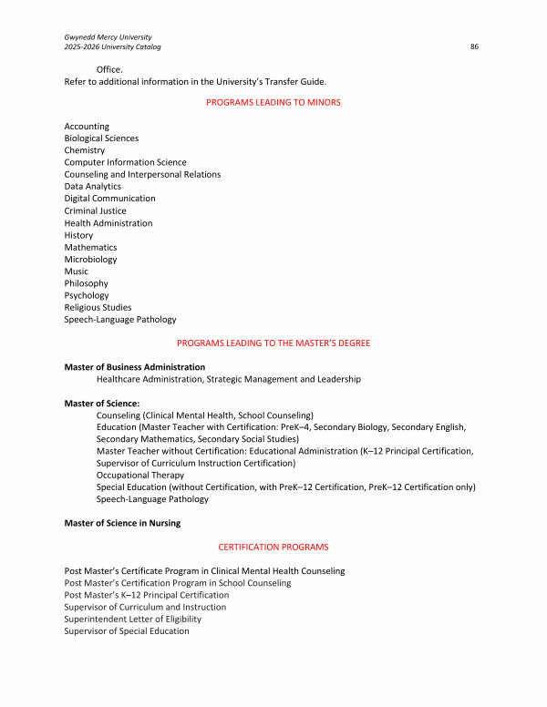 Gwynedd Mercy University 2025-2026 University Catalog 86