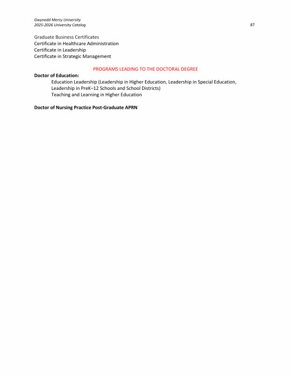 Gwynedd Mercy University 2025-2026 University Catalog 87