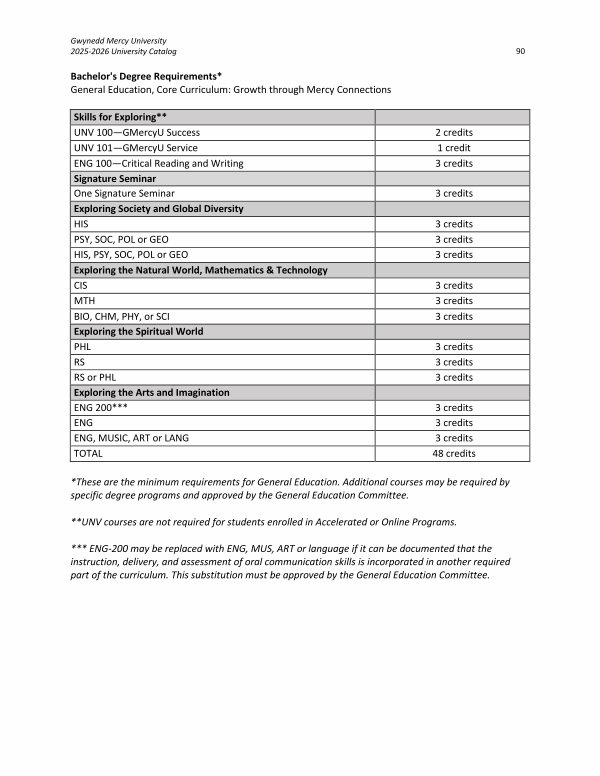 Bachelor ' s Degree Requirements * General Education, Core Curriculum: Growth through Mercy Connections