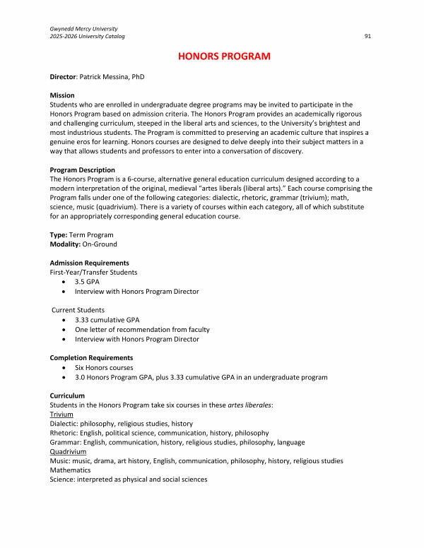 Gwynedd Mercy University 2025-2026 University Catalog 91
