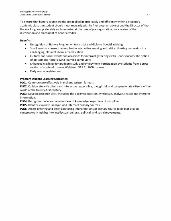 Gwynedd Mercy University 2025-2026 University Catalog 92