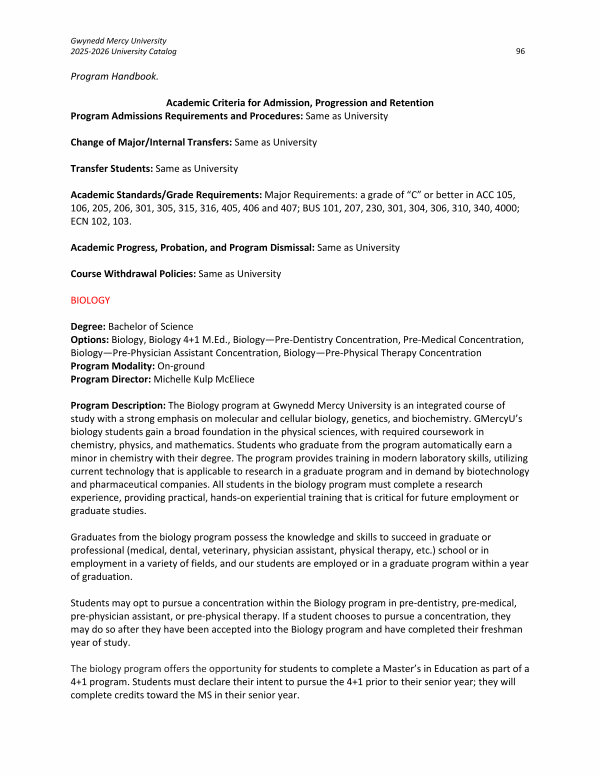 Gwynedd Mercy University 2025-2026 University Catalog 96