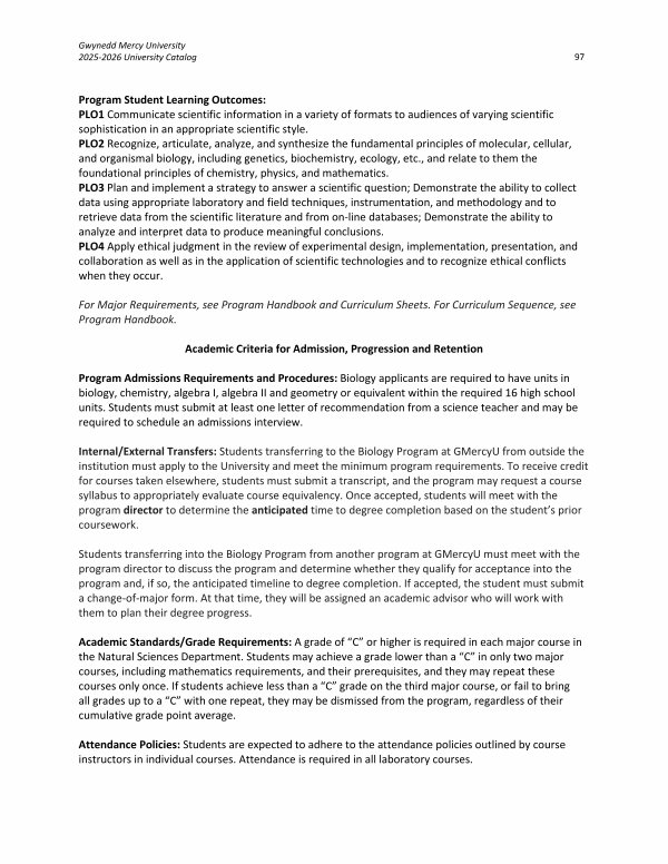 Gwynedd Mercy University 2025-2026 University Catalog 97