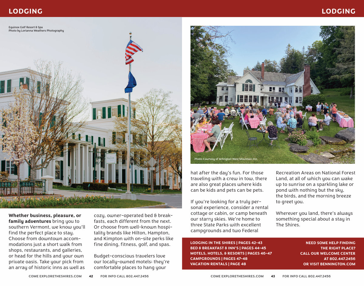 LODGING IN THE SHIRES | PAGES 42-43 BED & BREAKFAST & INN’ S | PAGES 44-45 MOTELS, HOTELS, & RESORTS | PAGES 46-47 CAMPGROUNDS | PAGES 47-48 VACATION RENTALS | PAGE 48
