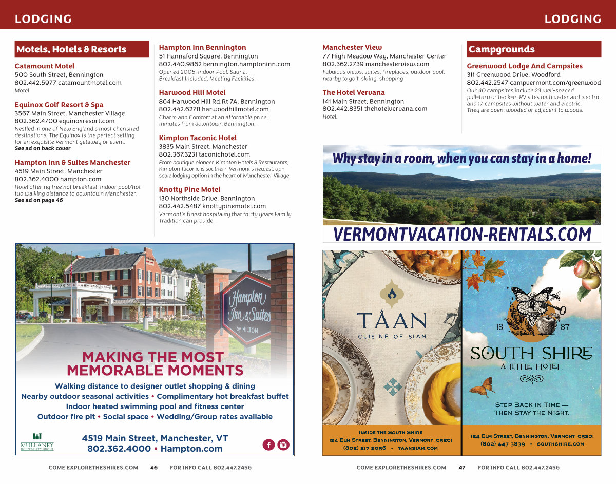 Inside the South Shire 124 Elm Street, Bennington, Vermont 05201( 802) 217 2056 • taansiam. com