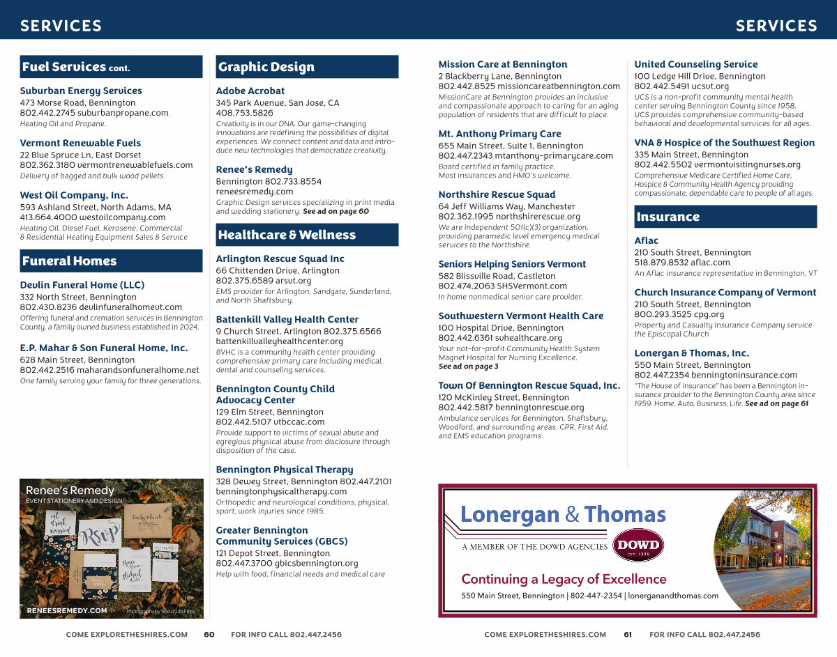 COME EXPLORETHESHIRES. COM 60 FOR INFO CALL 802.447.2456