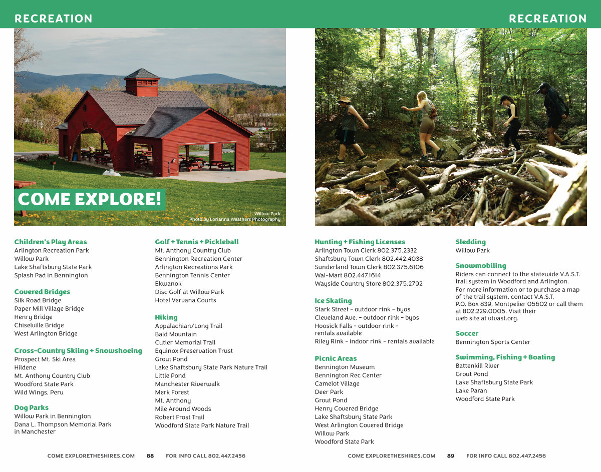 COME EXPLORETHESHIRES. COM 89 FOR INFO CALL 802.447.2456
