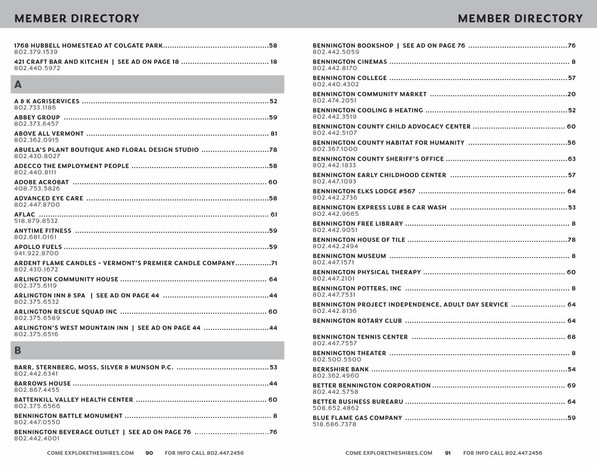 BENNINGTON BOOKSHOP | SEE AD ON PAGE 76............................................. 76 802.442.5059