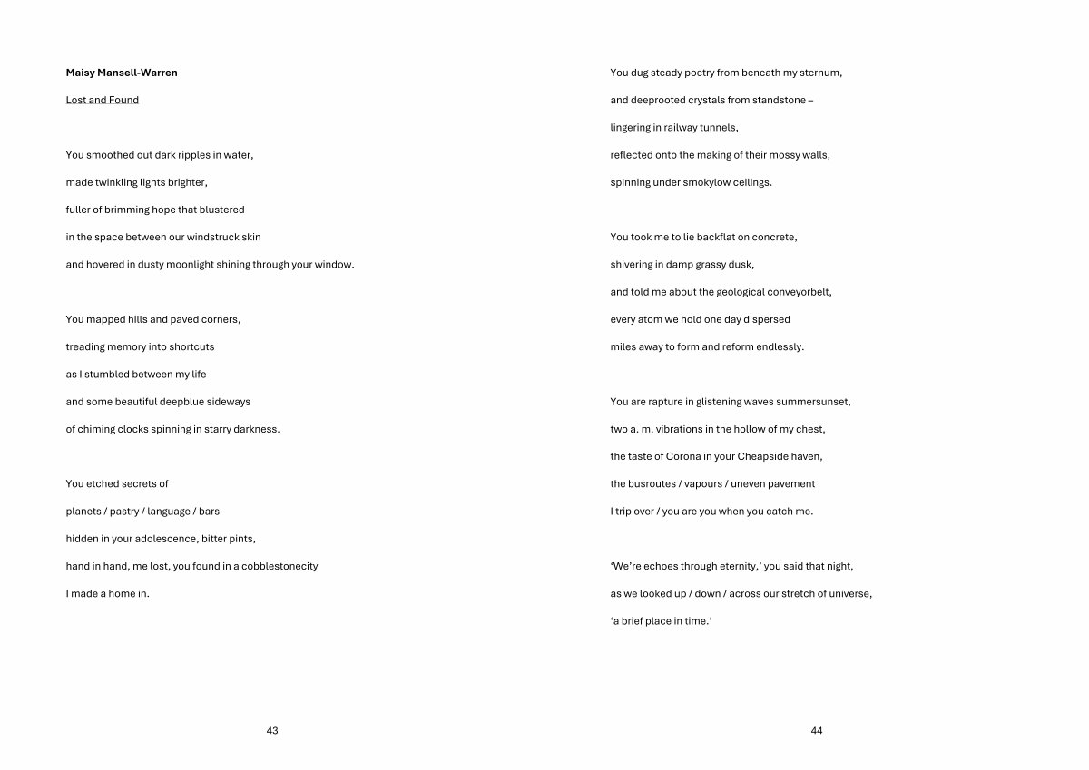 You etched secrets of planets / pastry / language / bars hidden in your adolescence, bitter pints, hand in hand, me lost, you found in a cobblestonecity I made a home in.