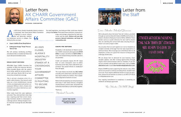 Visit us online at alaskacharr. com for current TAP and ServSafe class schedules, statewide instructor classes and contact information, legislative updates, event registration and information, scholarship applications, CHARR Affiliate contact informtion, Board of Director information and more!