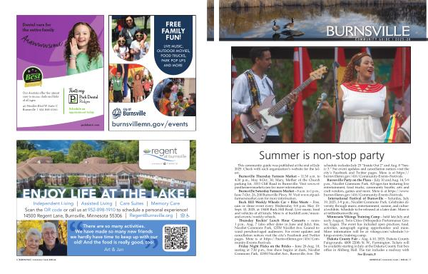 ENJOY LIFE AT THE LAKE! Independent Living | Assisted Living | Care Suites | Memory Care Scan the QR code or call us at 952-898-1910 to schedule a personal experience! 14500 Regent Lane, Burnsville, Minnesota 55306 | RegentBurnsville. org |