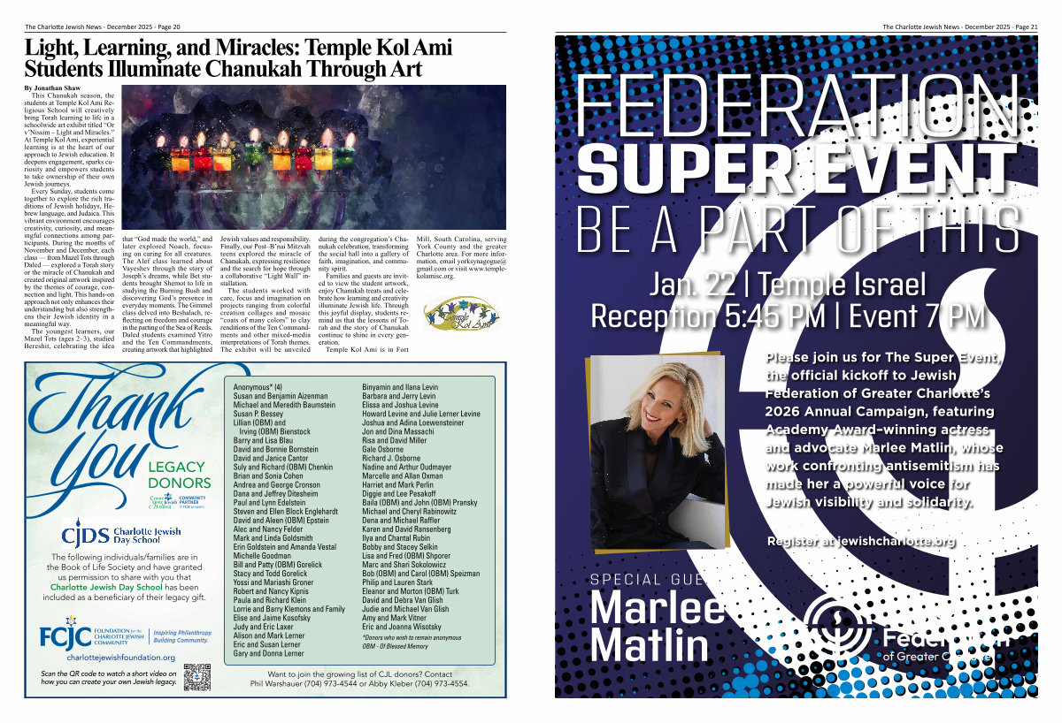 Please join us for The Super Event, the official kickoff to Jewish Federation of Greater Charlotte’ s 2026 Annual Campaign, featuring Academy Award – winning actress and advocate Marlee Matlin, whose work confronting antisemitism has made her a powerful voice for Jewish visibility and solidarity.