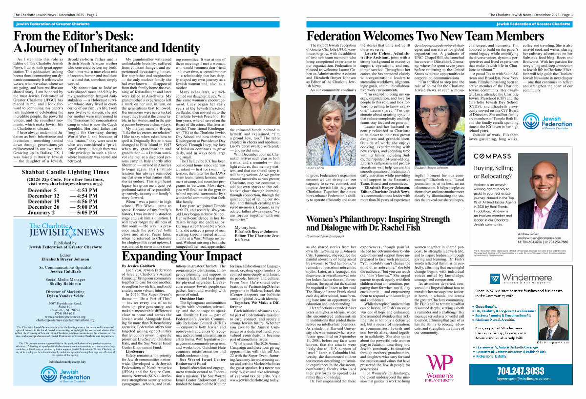 challenges, and humanity. I’ m honored to build on the paper’ s proud legacy while amplifying the diverse voices, dynamic perspectives and lived experiences that make Jewish life in Charlotte so vibrant.”