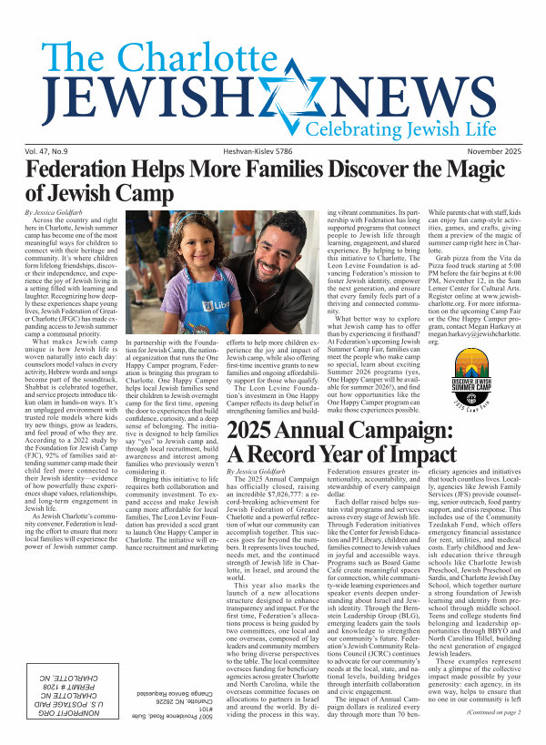 The 2025 Annual Campaign has officially closed, raising an incredible $ 7,026,777: a record-breaking achievement for Jewish Federation of Greater Charlotte and a powerful reflection of what our community can accomplish together. This success goes far beyond the numbers. It represents lives touched, needs met, and the continued strength of Jewish life in Charlotte, in Israel, and around the world.