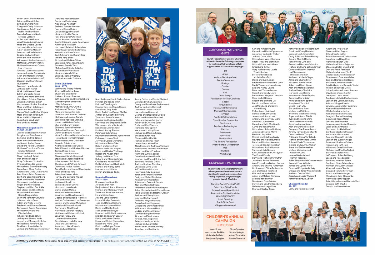 Thank you to our Corporate Partners whose generous investment made a significant impact and enhanced our ability to provide programming to greater Jewish Charlotte.