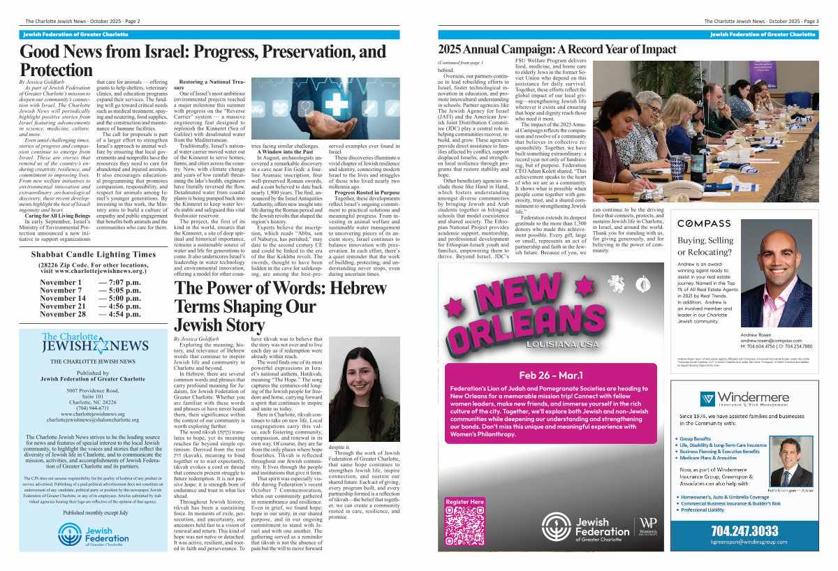 can continue to be the driving force that connects, protects, and sustains Jewish life in Charlotte, in Israel, and around the world. Thank you for standing with us, for giving generously, and for believing in the power of community.