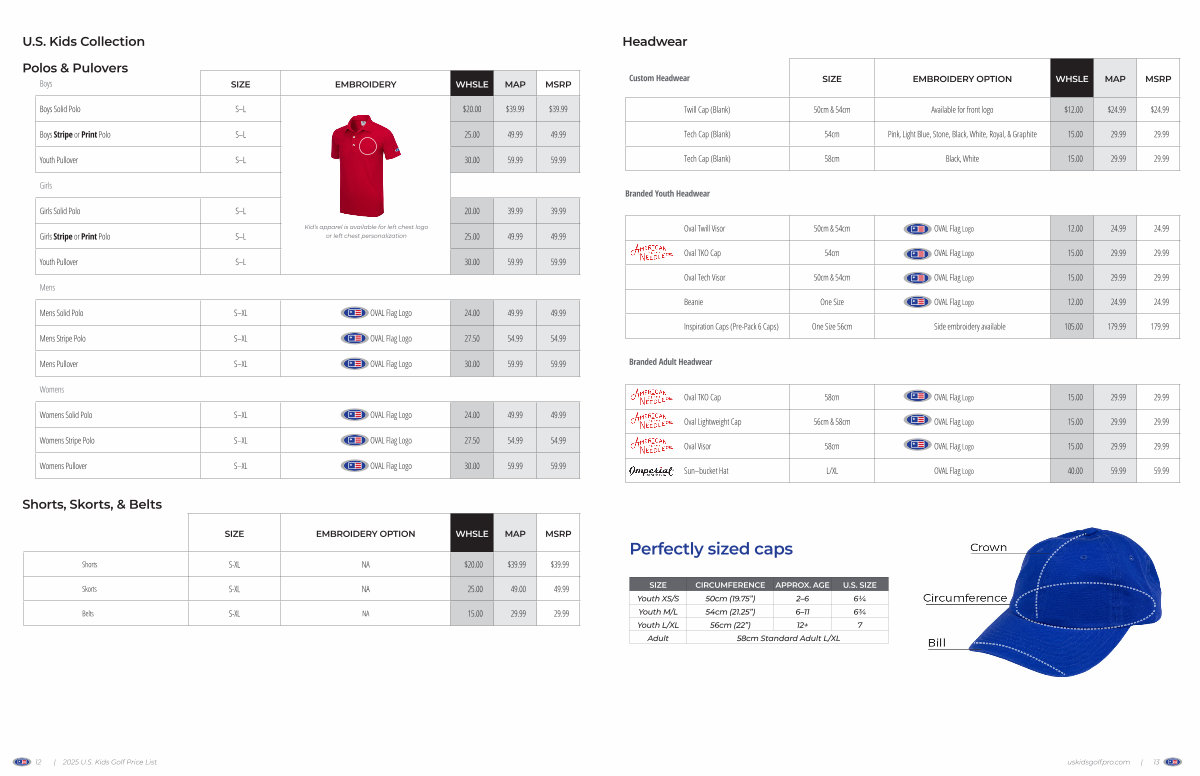 SIZE EMBROIDERY OPTION WHSLE MAP MSRP