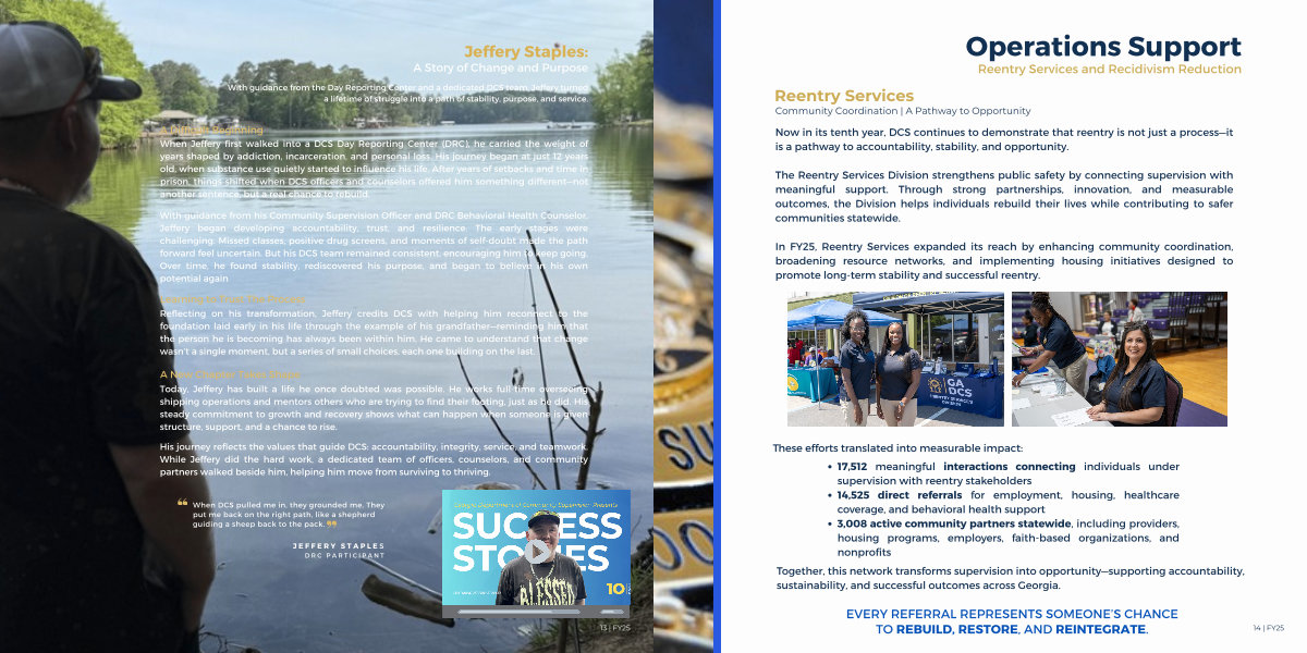 His journey reflects the values that guide DCS: accountability, integrity, service, and teamwork. While Jeffery did the hard work, a dedicated team of officers, counselors, and community partners walked beside him, helping him move from surviving to thriving.