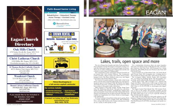 The Eagan Parks and Recreation office is at City Hall, 3830 Pilot Knob Road, 651-675-5500, cityofeagan. com / parks-recreation.