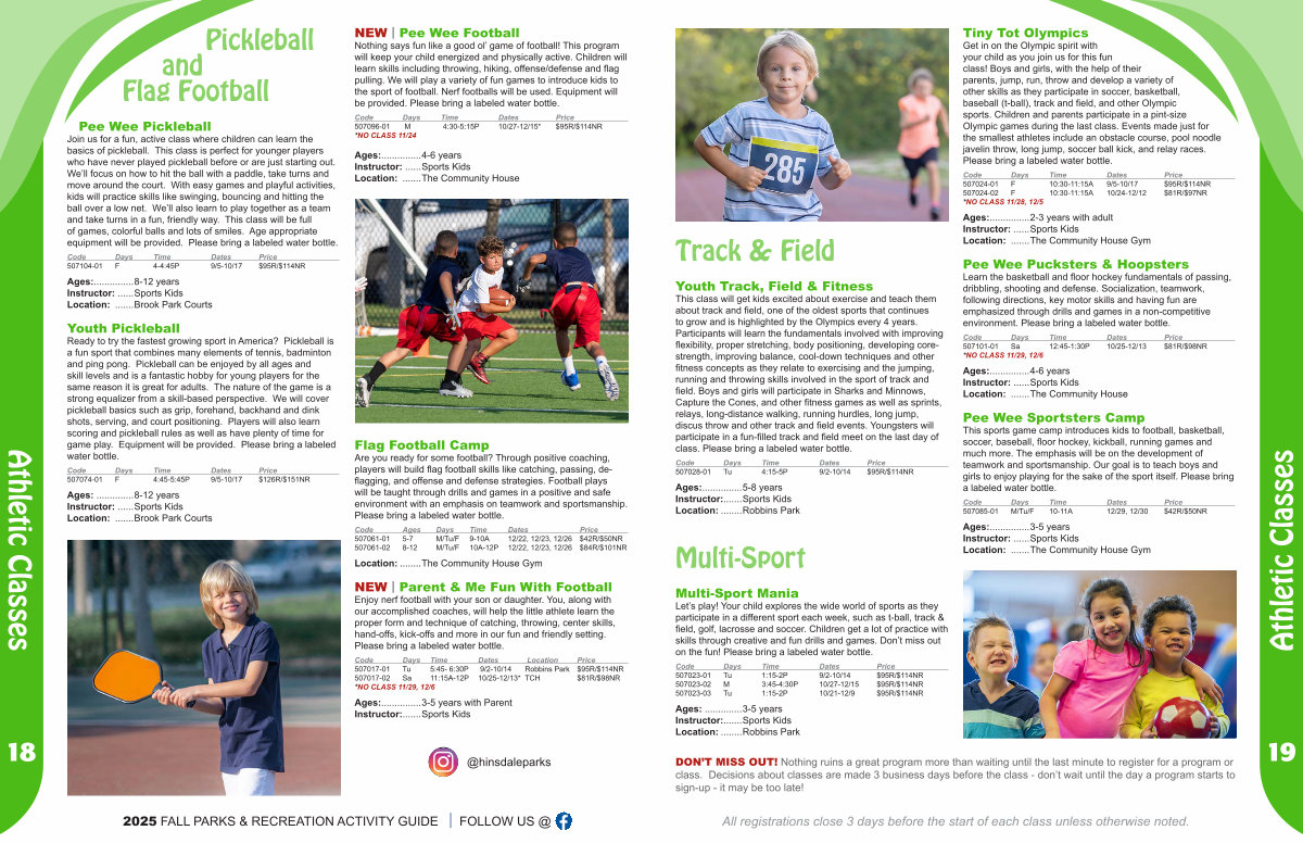 Ages:............... 5-8 years Instructor:....... Sports Kids Location:........ Robbins Park