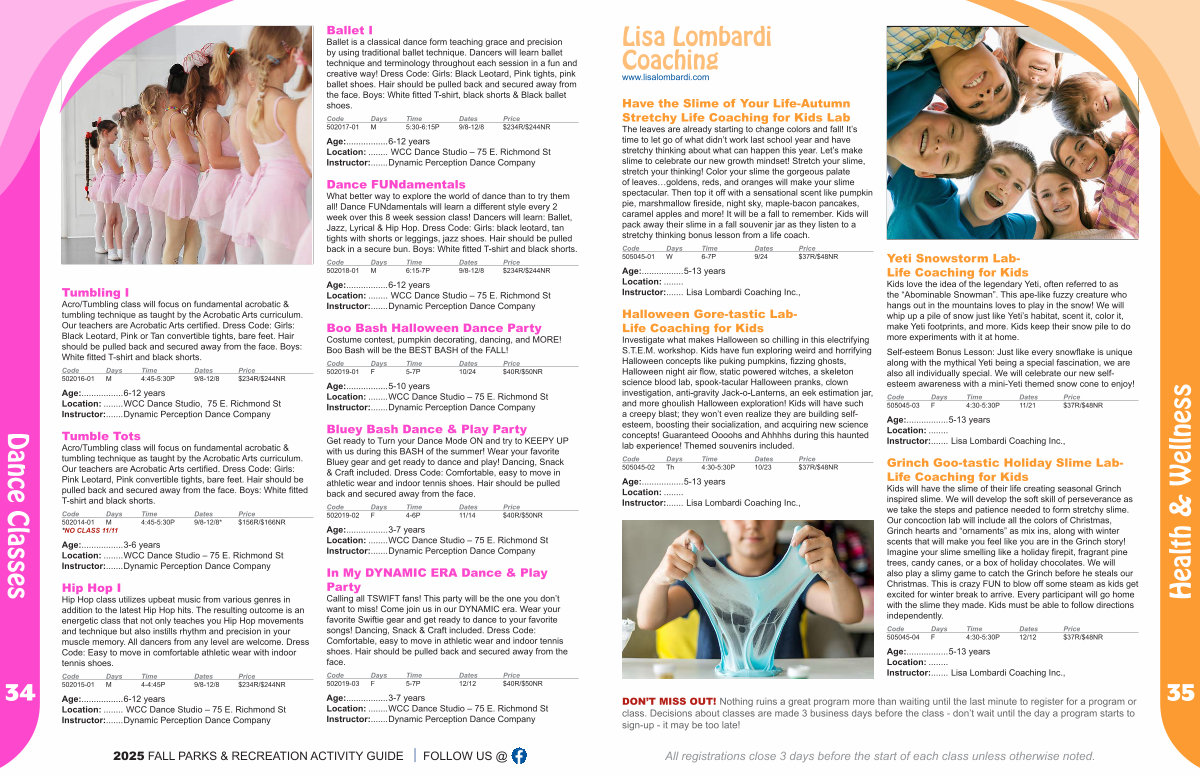 2025 FALL PARKS & RECREATION ACTIVITY GUIDE | FOLLOW US @