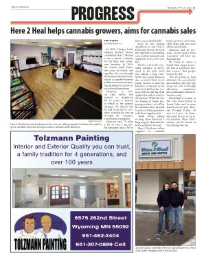 In 2022, Chisago Lakes resident Robert Ferrier established Here 2 Heal as a micro greens company for the high end restaurant business. In 2024, his cousin Jared Swanson came on board, and together, the two thought the business should transition to a cannabis business as Minnesota started passing legislation to allow for recreational marijuana.
