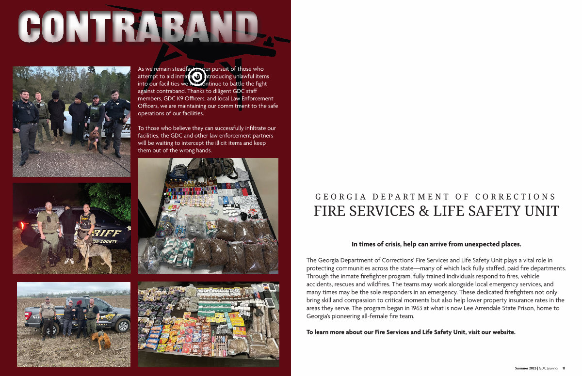 As we remain steadfast in our pursuit of those who attempt to aid inmates by introducing unlawful items into our facilities we will continue to battle the fight against contraband. Thanks to diligent GDC staff members, GDC K9 Officers, and local Law Enforcement Officers, we are maintaining our commitment to the safe operations of our facilities.