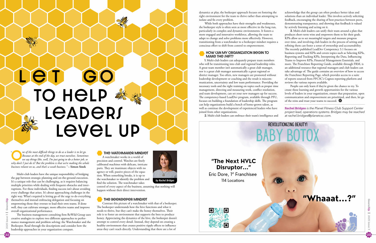 Rachel Bridges is the Planet Fitness Club Support Center project lead, operations systems. Bridges may be reached at rachel. bridges @ planetcsc. com.