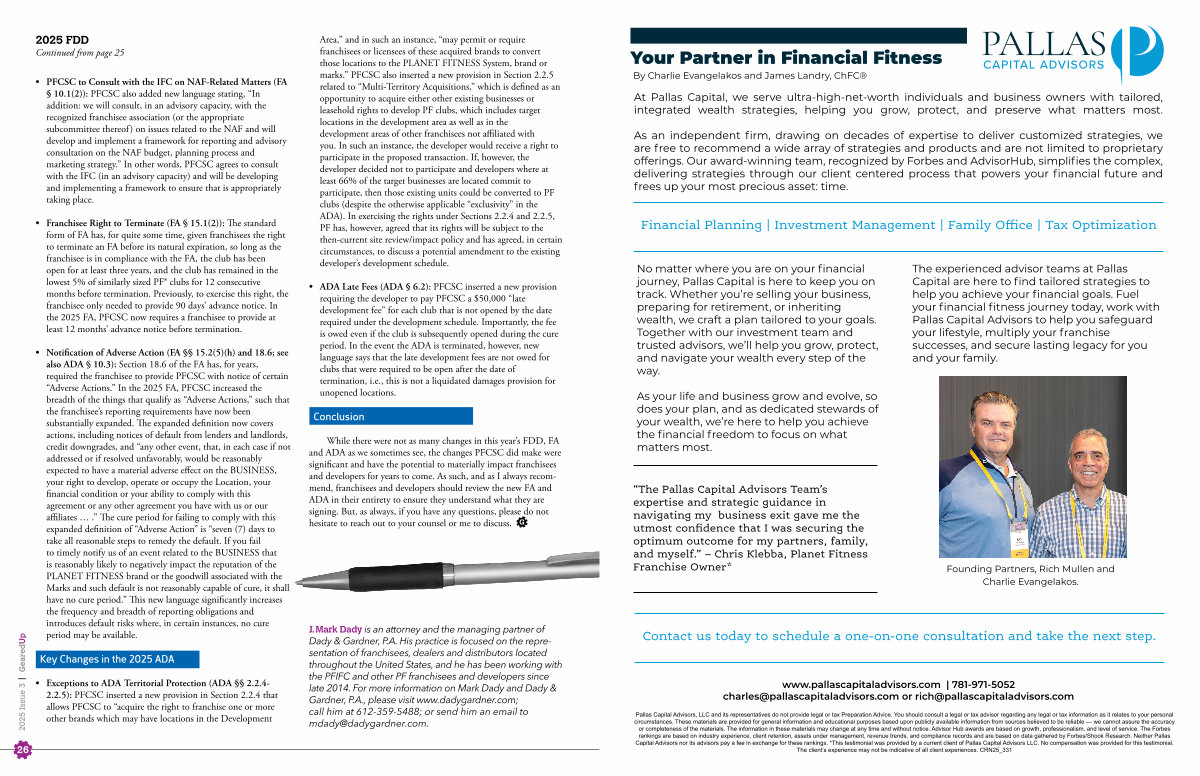 “ The Pallas Capital Advisors Team’ s expertise and strategic guidance in navigating my business exit gave me the utmost confidence that I was securing the optimum outcome for my partners, family, and myself.” – Chris Klebba, Planet Fitness Franchise Owner *