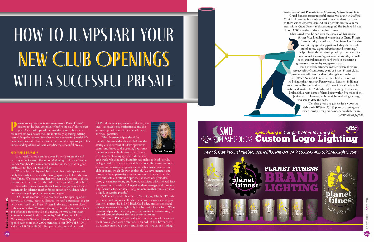 When asked what helped with the success of this presale, former Vice President of Marketing at Grand Fitness Shannon Meyers said that a“ full funnel media plan with strong spend support, including direct mail, out of home, digital advertising and streaming,” helped boost the location’ s presale performance. She also praised the club’ s great exterior visibility, as well as the general manager’ s hard work in executing a grassroots community engagement plan.