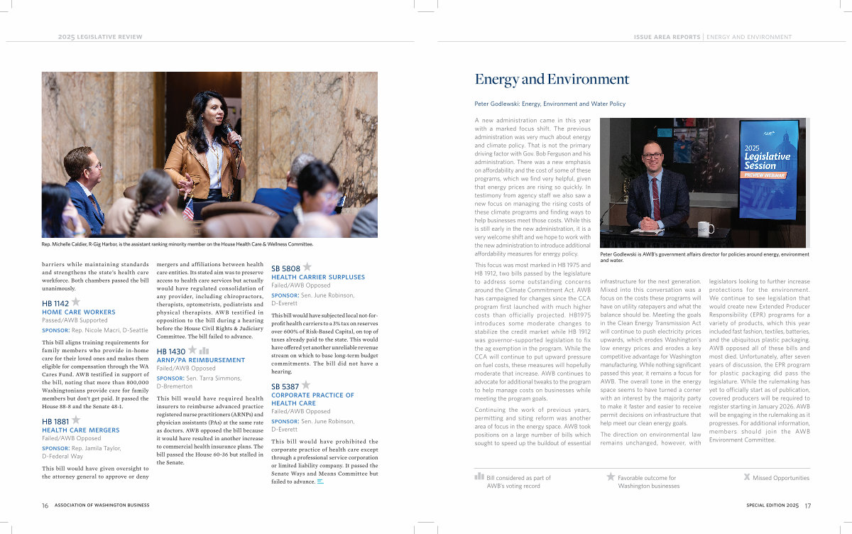 This bill aligns training requirements for family members who provide in-home care for their loved ones and makes them eligible for compensation through the WA Cares Fund. AWB testified in support of the bill, noting that more than 800,000 Washingtonians provide care for family members but don’ t get paid. It passed the House 88-8 and the Senate 48-1.