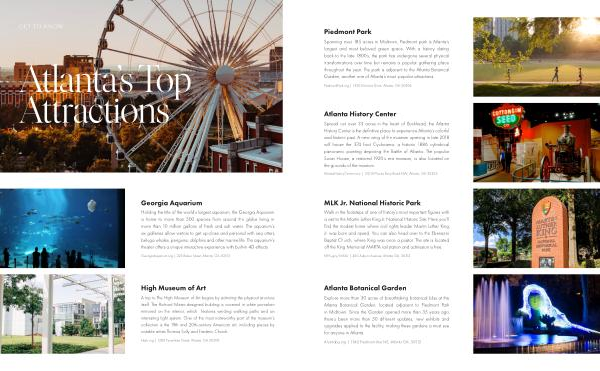 Spanning over 185 acres in Midtown , Piedmont park is Atlanta ’ s largest and most beloved green space . With a history dating back to the late 1800 ’ s , the park has undergone several physical transformations over time but remains a popular gathering place throughout the year . The park is adjacent to the Atlanta Botanical Garden , another one of Atlanta ’ s most popular attractions .