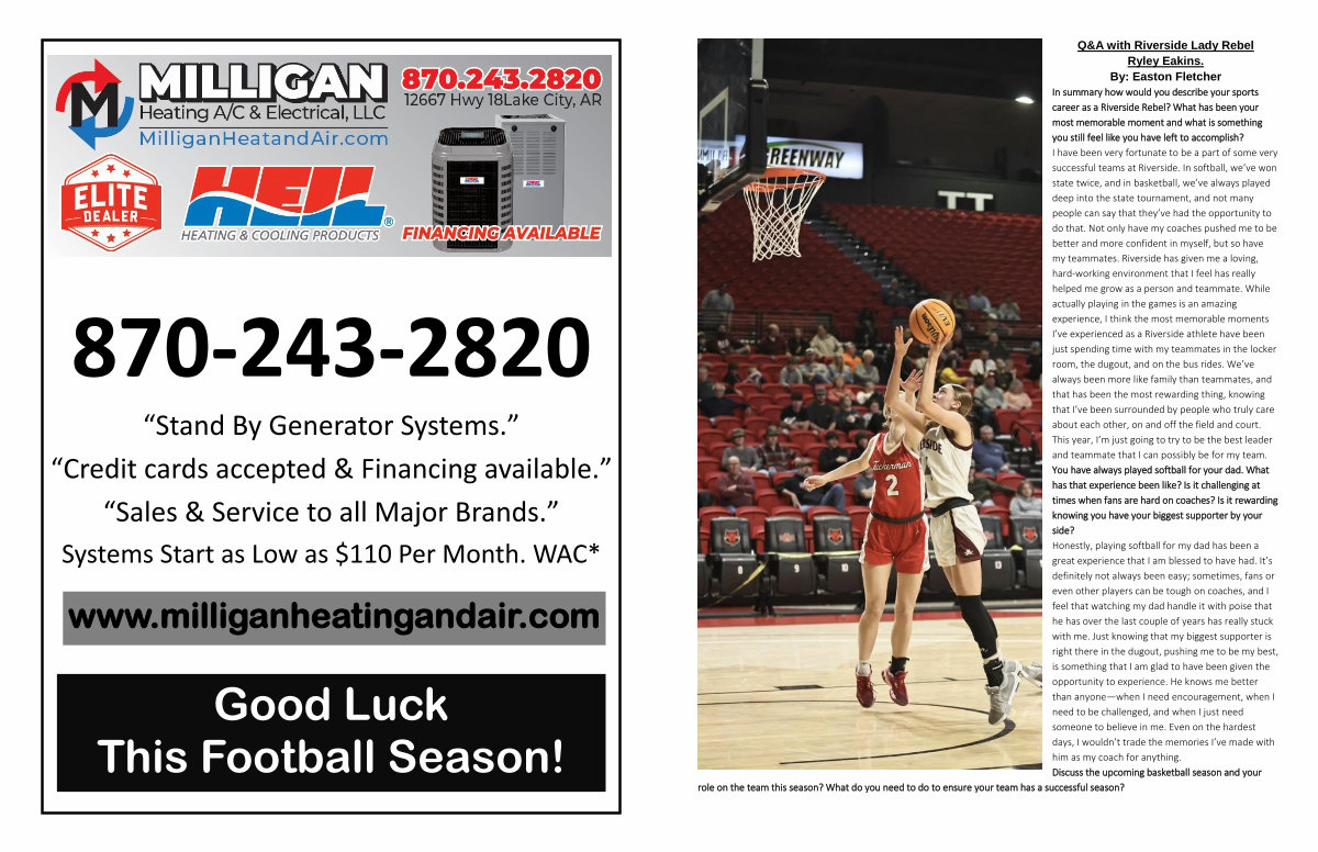 By: Easton Fletcher In summary how would you describe your sports career as a Riverside Rebel? What has been your most memorable moment and what is something you still feel like you have left to accomplish? I have been very fortunate to be a part of some very successful teams at Riverside. In softball, we’ ve won state twice, and in basketball, we’ ve always played deep into the state tournament, and not many people can say that they’ ve had the opportunity to do that. Not only have my coaches pushed me to be better and more confident in myself, but so have my teammates. Riverside has given me a loving, hard-working environment that I feel has really helped me grow as a person and teammate. While actually playing in the games is an amazing experience, I think the most memorable moments I’ ve experienced as a Riverside athlete have been just spending time with my teammates in the locker room, the dugout, and on the bus rides. We’ ve always been more like family than teammates, and that has been the most rewarding thing, knowing that I’ ve been surrounded by people who truly care about each other, on and off the field and court. This year, I’ m just going to try to be the best leader and teammate that I can possibly be for my team. You have always played softball for your dad. What has that experience been like? Is it challenging at times when fans are hard on coaches? Is it rewarding knowing you have your biggest supporter by your side? Honestly, playing softball for my dad has been a great experience that I am blessed to have had. It’ s definitely not always been easy; sometimes, fans or even other players can be tough on coaches, and I feel that watching my dad handle it with poise that he has over the last couple of years has really stuck with me. Just knowing that my biggest supporter is right there in the dugout, pushing me to be my best, is something that I am glad to have been given the opportunity to experience. He knows me better than anyone— when I need encouragement, when I need to be challenged, and when I just need someone to believe in me. Even on the hardest days, I wouldn’ t trade the memories I’ ve made with him as my coach for anything. Discuss the upcoming basketball season and your role on the team this season? What do you need to do to ensure your team has a successful season?