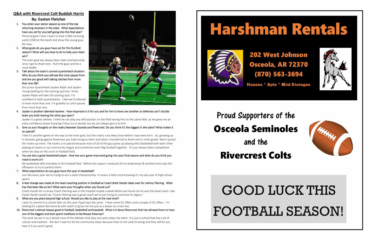 5. Give us your thoughts on the rivalry between Osceola and Rivercrest. Do you think it’ s the biggest in the state? What makes it so special? I feel it’ s another game on the way to the main goal, but the rivalry runs deep since before I was even born. So, growing up in Osceola, going against Rivercrest you hate losing to them and when I transferred to Rivercrest in ninth grade I feel it spiced the rivalry up more. The rivalry is so special because most of all of the guys grew up playing AAU basketball with each other playing on teams in our community league and sometimes even flag football together. It’ s just always been competitive when we step on the court or football field.