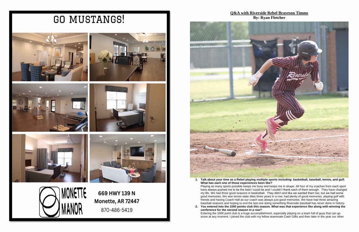 1. Talk about your time as a Rebel playing multiple sports including: basketball, baseball, tennis, and golf. What has each one of those experiences been like? Playing as many sports possible keeps me busy and keeps me in shape. All four of my coaches from each sport have always pushed me to be the best I could be and I couldn’ t thank each of them enough. They have changed my life. We had three good seasons in basketball. They didn’ t end like we wanted them too, but we had some good memories. We won tennis state titles three years in a row, had plenty of good memories. playing golf with friends and having Coach Hall as our coach was always just good memories. We have had three amazing baseball seasons and hoping to end the last one doing something Riverside baseball has never done in history.
