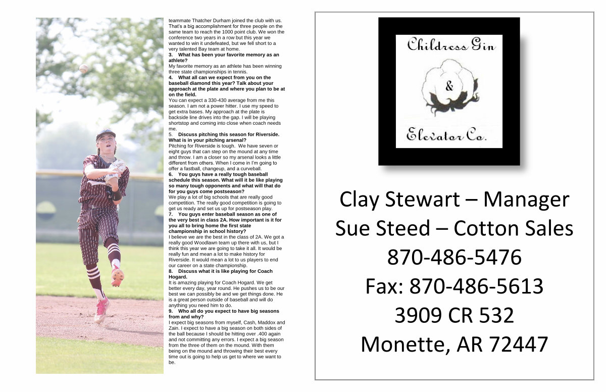 Clay Stewart – Manager Sue Steed – Cotton Sales 870-486-5476 Fax: 870-486-5613 3909 CR 532 Monette, AR 72447