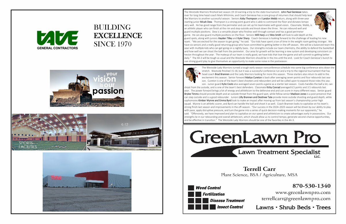 The Westside Lady Warriors turned a tough early season nonconference schedule into some big conference wins down the stretch. Westside finished 15-18, but it was a successful conference run and a trip to the regional tournament that has head coach Brad Brannen and the Lady Warriors looking for more this season. Three starters also return to add to the excitement this season. Senior forward Mattyx Cureton is back after averaging seven points and four rebounds last season. Cureton is one of the team’ s best shooters and rebounders and will be called upon to expand those roles this season. Junior guard Kylie Coots also averaged seven points a game as a starter last season. Coots handles the ball a lot, can shoot from the outside, and is one of the team’ s best defenders. Classmate Kirby Conrad averaged 6.5 points and 3.5 rebounds last year. The power forward brings a lot of energy and athleticism to the defensive end and can score in many different ways. Senior guard Brylee Timms should provide depth and an outside threat from the guard spot, while fellow senior Madison Jones is a post presence that can step outside and is a good rebounder. Juniors Lilly Brannen and Destinee Tate provide more outside shooting and guard depth, while sophomores Kimber Wynne and Emma Byrd look to make an impact after moving up from last season’ s championship junior high squad. Wynne is an athletic scorer, and Byrd can handle the ball and shoot it as well. Coach Brannen looks to capitalize on his team’ s strong finish last season and improvements in the off-season.“ Our success in the 2024 – 2025 season will be driven by our ability to play with pace, apply disruptive pressure, and turn the game into a series of quick decision-making moments for our opponents,” he said.“ Offensively, we have improved and plan to capitalize on our speed and athleticism to create advantages early in possessions. Our strengths lie in our rebounding and overall athleticism, which should allow us to control tempo, generate second-chance opportunities, and be effective in transition.” The Westside Lady Warriors should be one of the favorites in the 4A-3.