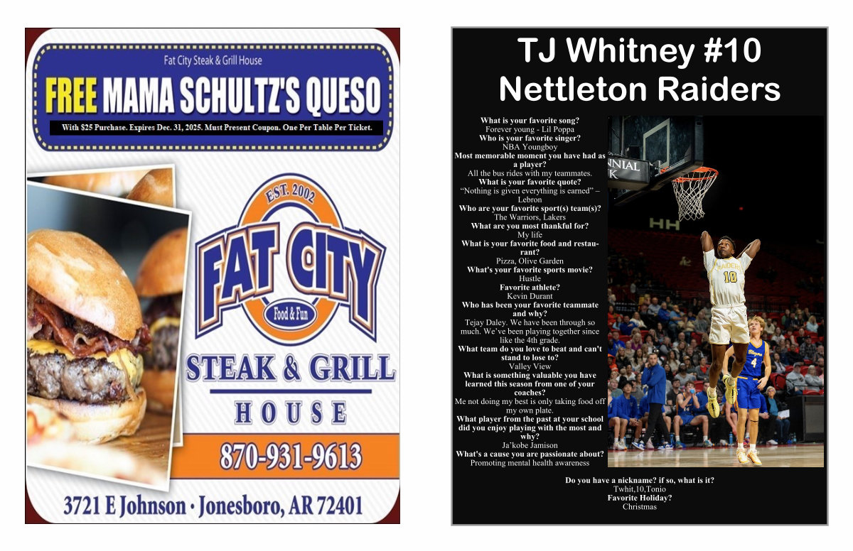 What is your favorite song? Forever young- Lil Poppa Who is your favorite singer? NBA Youngboy Most memorable moment you have had as a player? All the bus rides with my teammates. What is your favorite quote?“ Nothing is given everything is earned” – Lebron Who are your favorite sport( s) team( s)? The Warriors, Lakers What are you most thankful for? My life What is your favorite food and restaurant? Pizza, Olive Garden What ' s your favorite sports movie? Hustle Favorite athlete? Kevin Durant Who has been your favorite teammate and why? Tejay Daley. We have been through so much. We’ ve been playing together since like the 4th grade. What team do you love to beat and can ' t stand to lose to? Valley View What is something valuable you have learned this season from one of your coaches? Me not doing my best is only taking food off my own plate. What player from the past at your school did you enjoy playing with the most and why? Ja’ kobe Jamison What ' s a cause you are passionate about? Promoting mental health awareness