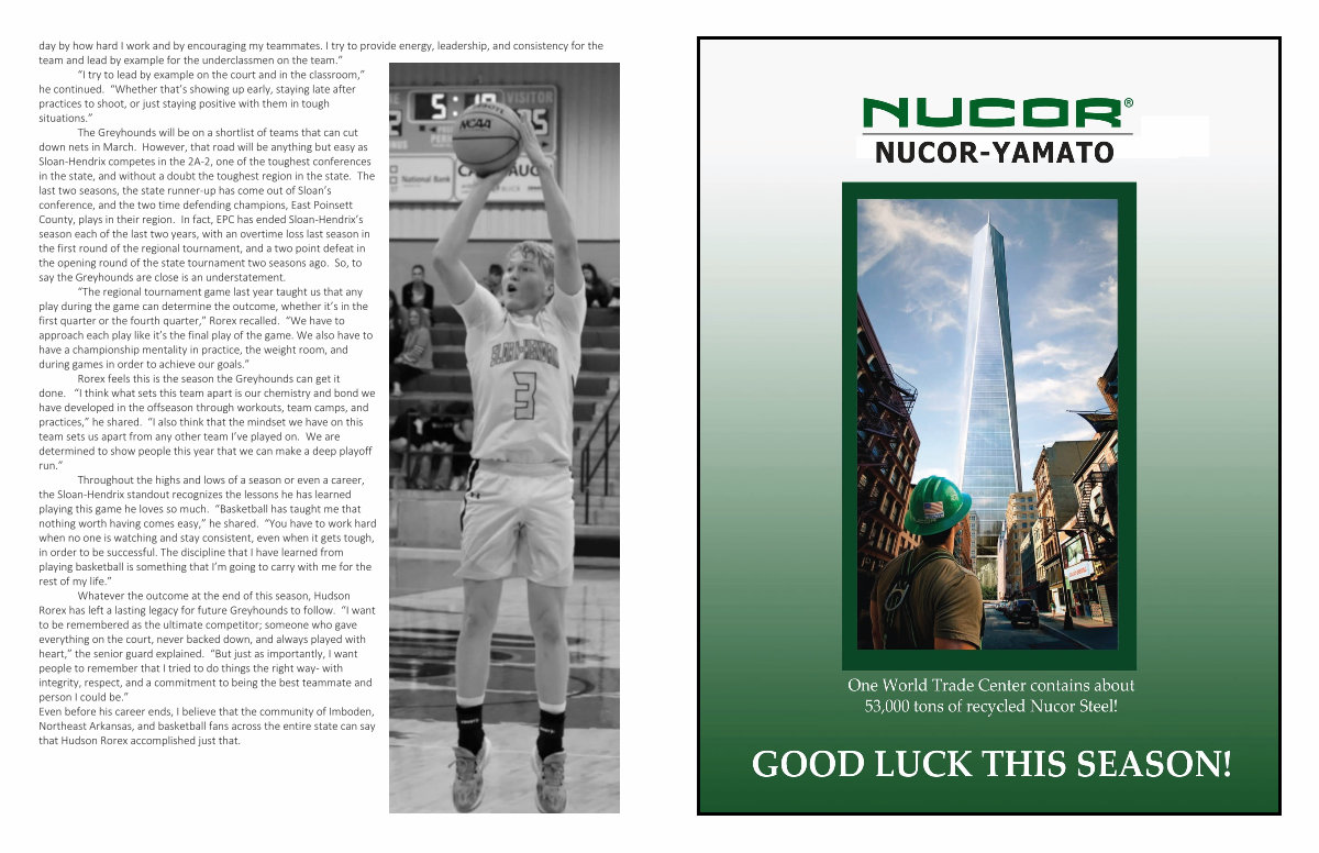 Whatever the outcome at the end of this season, Hudson Rorex has left a lasting legacy for future Greyhounds to follow.“ I want to be remembered as the ultimate competitor; someone who gave everything on the court, never backed down, and always played with heart,” the senior guard explained.“ But just as importantly, I want people to remember that I tried to do things the right way- with integrity, respect, and a commitment to being the best teammate and person I could be.” Even before his career ends, I believe that the community of Imboden, Northeast Arkansas, and basketball fans across the entire state can say that Hudson Rorex accomplished just that.