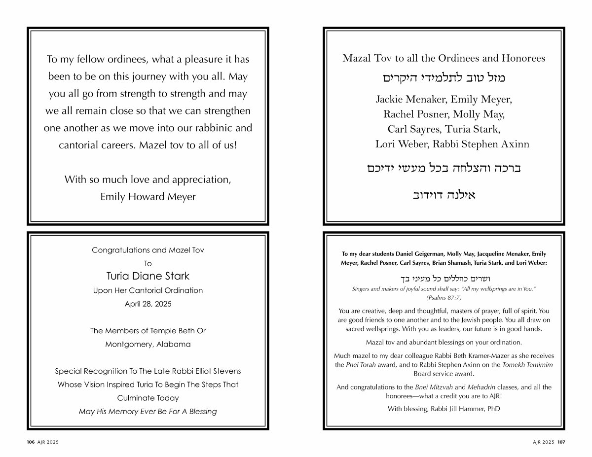 And congratulations to the Bnei Mitzvah and Mehadrin classes, and all the honorees— what a credit you are to AJR!