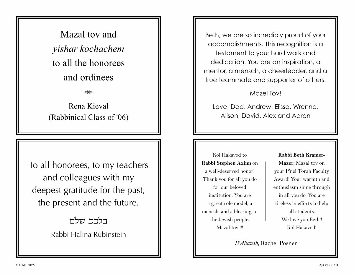 Rabbi Beth Kramer- Mazer, Mazal tov on your P ' nei Torah Faculty Award! Your warmth and enthusiasm shine through in all you do. You are tireless in efforts to help all students. We love you Beth!! Kol Hakavod!