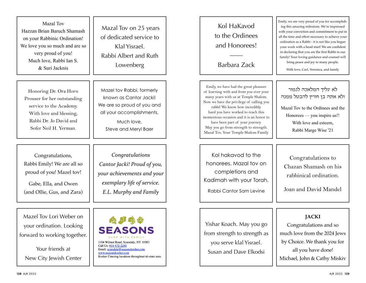 Kol HaKavod to the Ordinees and Honorees!—— Barbara Zack