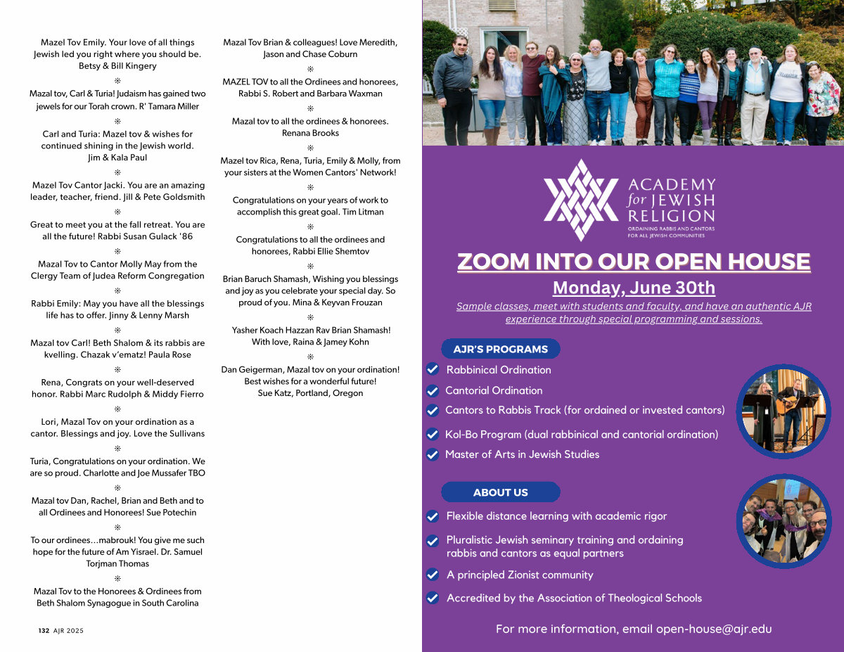 j MAZEL TOV to all the Ordinees and honorees, Rabbi S. Robert and Barbara Waxman