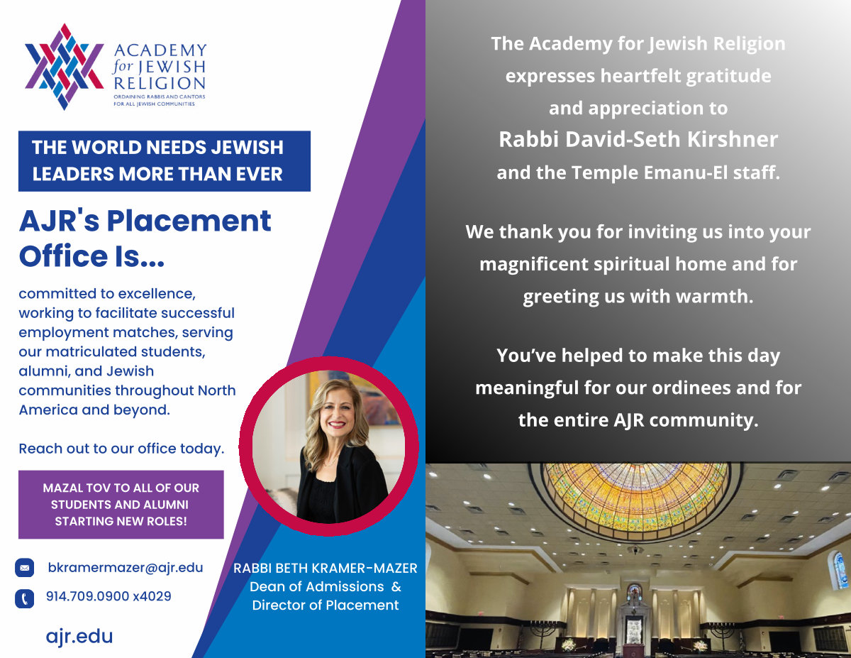 committed to excellence, working to facilitate successful employment matches, serving our matriculated students, alumni, and Jewish communities throughout North America and beyond.