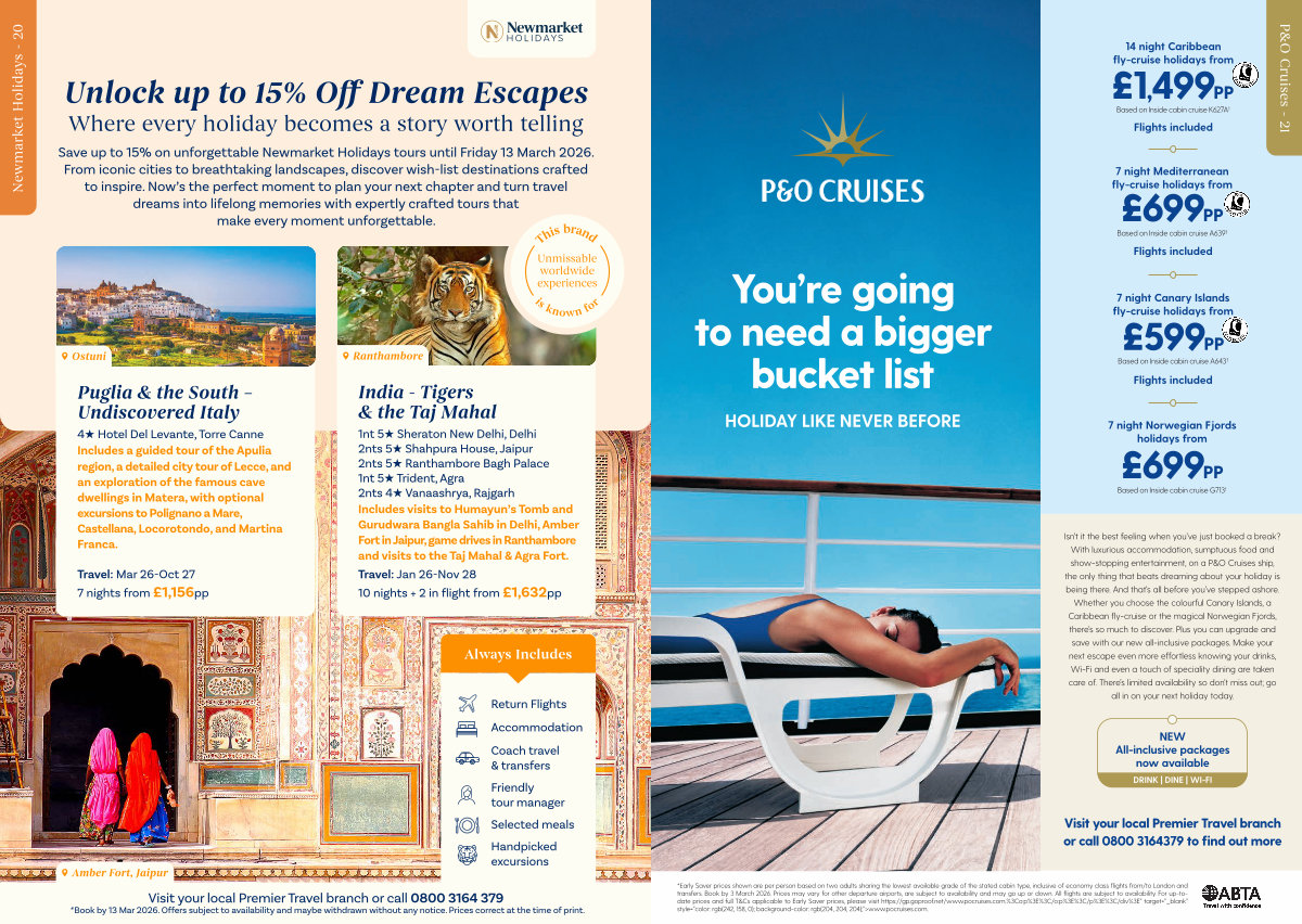 Visit your local Premier Travel branch or call 0800 3164379 to find out more
